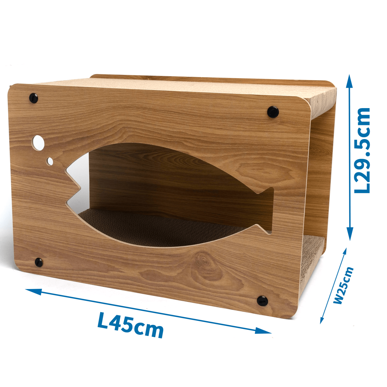 Das 2-in-1 Katzen Kratzbrett und Katzentunnel ist die perfekte Kombination aus Spielspaß und Krallenpflege für Ihre Katze. Mit den Maßen 45 x 25 x 29,5 cm bietet es ausreichend Platz zum Kratzen, Spielen und Entspannen. Die stilvolle braune Farbe fügt sich harmonisch in jede Wohnumgebung ein und macht das Kratzbrett zu einem echten Hingucker. Gefertigt aus hochwertigem, umweltfreundlichem Wellpapier ist das Kratzbrett nicht nur ungiftig, sondern auch besonders langlebig und widerstandsfähig gegen Kratzer. Das Material ist sicher für Katzen und unterstützt gleichzeitig die natürliche Krallenpflege. Zusätzlich sorgt die im Lieferumfang enthaltene Katzenminze dafür, dass das Interesse der Katze geweckt wird und sie das Kratzbrett gerne benutzt. Das innovative 2-in-1-Design ermöglicht vielseitige Einsatzmöglichkeiten: Das Kratzbrett kann schnell und einfach zu einem Katzentunnel zusammengebaut werden, der zum Verstecken, Spielen und Ausruhen einlädt. Diese Funktion fördert die Interaktion und animiert Katzen zum aktiven Spielen, wodurch Langeweile vermieden wird. Dank der kompakten Maße lässt sich das Kratzbrett problemlos in jeder Wohnung aufstellen. Es ist leicht und kann bei Bedarf einfach umgestellt oder transportiert werden. Die Kombination aus Kratzfläche und Spieltunnel bietet Katzen eine ideale Beschäftigungsmöglichkeit und trägt gleichzeitig zur Krallenpflege und Stressabbau bei. Das 2-in-1 Katzen Kratzbrett und Katzentunnel vereint Funktionalität, Spielspaß und Krallenpflege in einem Produkt und sorgt dafür, dass Ihre Katze rundum zufrieden ist.