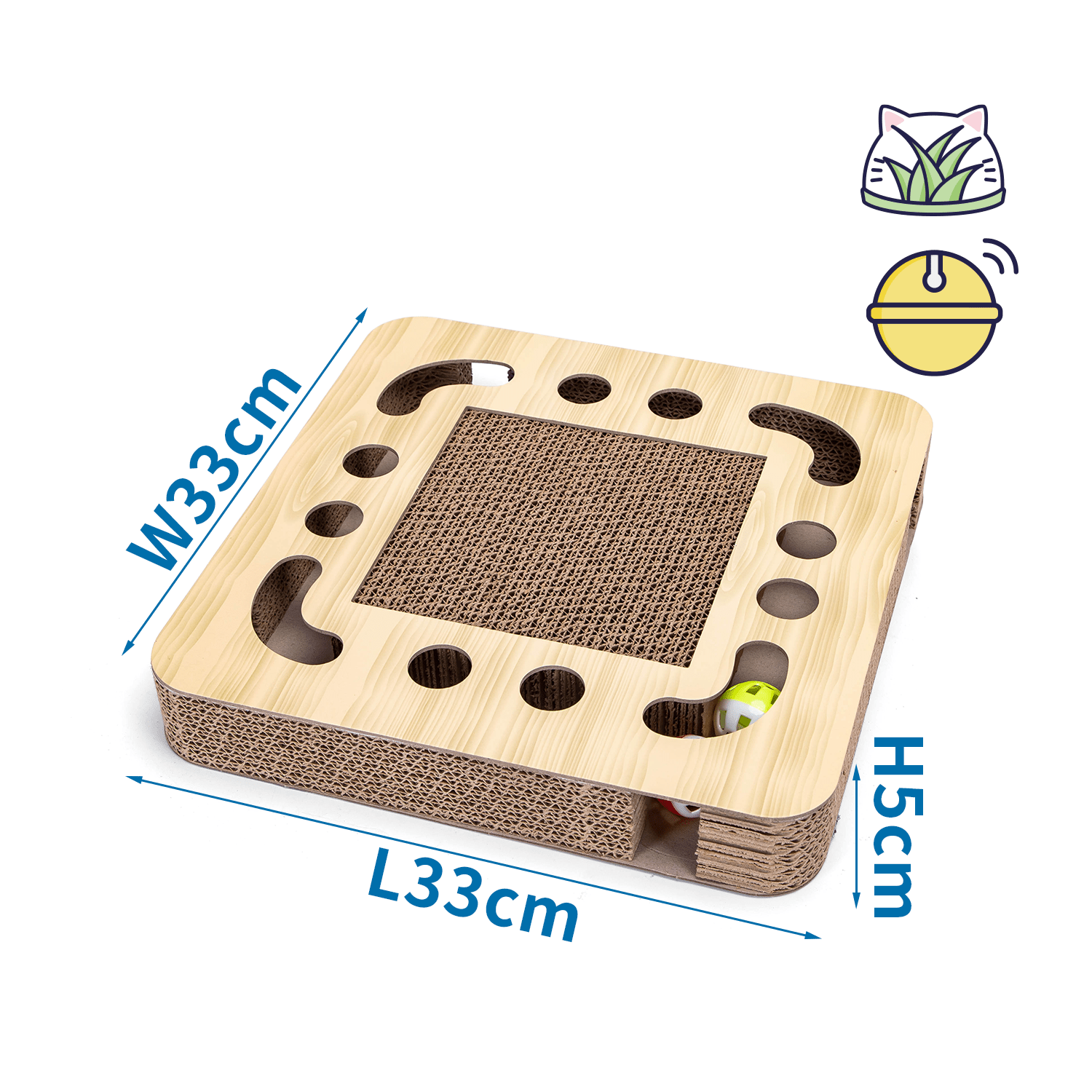 Das nobleza Kratzbrett mit integriertem Labyrinth vereint Krallenpflege und Spielspaß in einem cleveren Design. Aus robuster, umweltfreundlicher Wellpappe gefertigt, bietet es eine ideale Kratzfläche, die Möbel schützt und die Krallen Ihrer Katze gesund hält. Zwei bewegliche Spielbälle im Labyrinth regen den Jagdtrieb an und sorgen für stundenlange Unterhaltung. Kompakt, leicht und optisch ansprechend – ein nachhaltiges und interaktives Kratzspielzeug für glückliche und aktive Katzen.