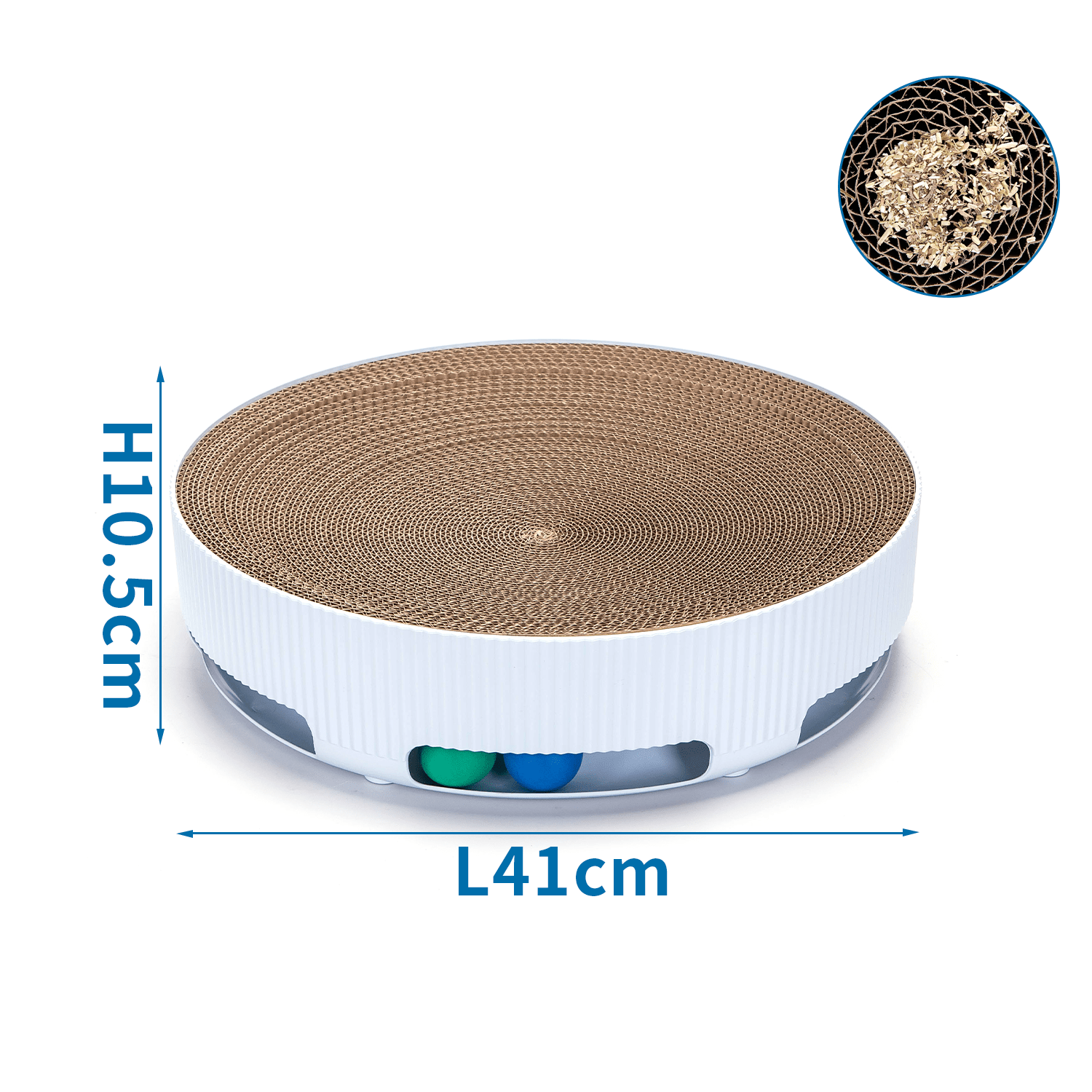 Das nobleza Runde Kratzbrett mit Spielfunktion vereint Krallenpflege und Spielspaß in einem cleveren Design. Mit einem Durchmesser von 41 cm bietet es ausreichend Platz für Katzen jeder Größe. Die Kombination aus strapazierfähigem PP und kratzfreundlicher Wellpappe ermöglicht ausgiebiges Krallenwetzen und schützt gleichzeitig Ihre Möbel. Integrierte Spielbälle in einem Labyrinth regen den Jagdtrieb Ihrer Katze an und sorgen für langanhaltende Beschäftigung. Das auswechselbare Innenbrett verlängert die Lebensdauer des Produkts und macht es besonders nachhaltig. Ein vielseitiges, robustes und interaktives Spiel- und Kratzbrett für glückliche und aktive Katzen.