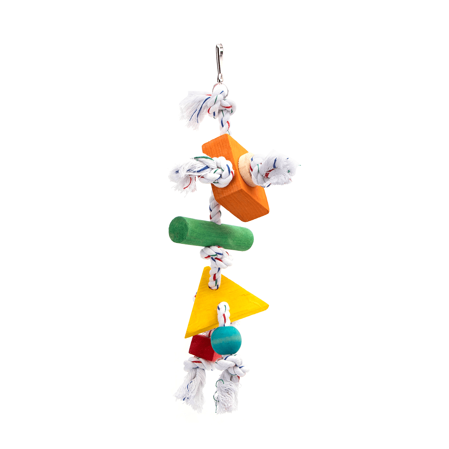 Der interaktive Baumwollseilknoten mit Holzklötzen von nobleza ist ein abwechslungsreiches Spielzeug für Vögel, das Bewegung, Spiel und natürliche Verhaltensweisen fördert. Weiche Baumwollseile und bunt lackierte Naturholzklötze laden zum Klettern, Greifen und Nagen ein – ideal zur Schnabelpflege und zur Beschäftigung im Käfig. Die unterschiedlichen Materialien und Formen sorgen für langanhaltenden Spielspaß und beugen Langeweile vor. Dank stabilem Haken lässt sich das Spielzeug sicher befestigen und passt in jede Voliere. Ein langlebiges, sicheres Zubehör für gesunde und aktive Vögel.