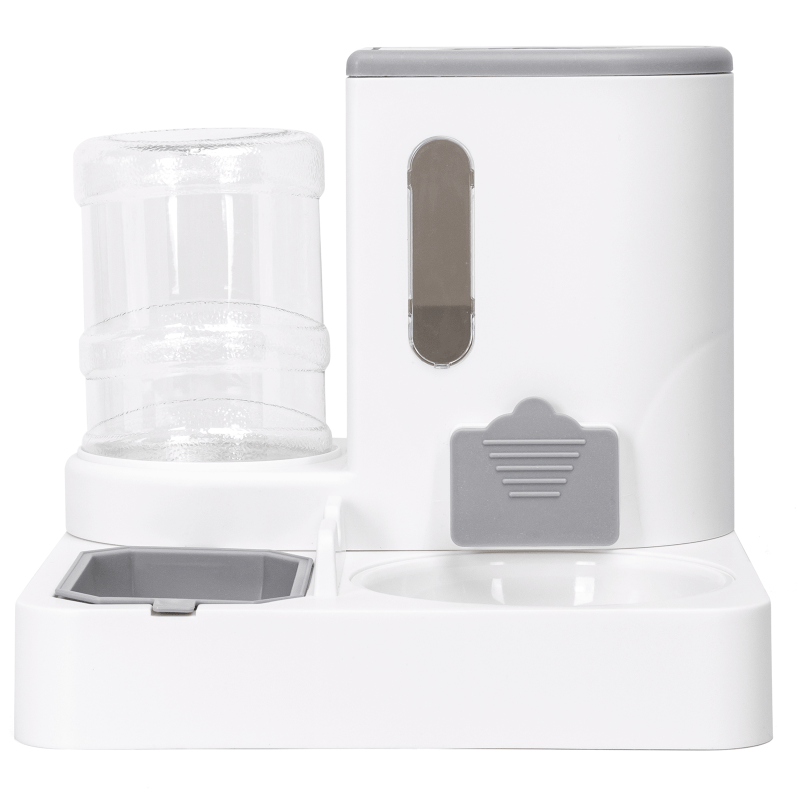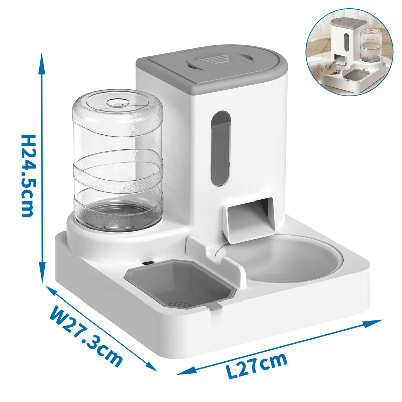Die Futterstation für Hunde und Katzen bietet eine praktische und stilvolle Lösung, um Ihr Haustier mit Nahrung und Wasser zu versorgen. Hergestellt aus hochwertigem PP-Material, das lebensmittelecht, sicher, ungiftig und geruchlos ist, garantiert diese Futterstation die Gesundheit und Sicherheit Ihres Haustieres. Die sorgfältige Verarbeitung sorgt für eine langlebige und robuste Konstruktion, die dem täglichen Gebrauch standhält. Das durchdachte Zwei-in-Eins-Design kombiniert einen Futternapf und eine Tränke in einer kompakten Einheit, was nicht nur Platz spart, sondern auch die Fütterung und Wasserversorgung Ihres Haustieres optimiert. Der Futternapf bietet ausreichend Platz für Trocken- oder Nassfutter, während die integrierte Tränke eine kontinuierliche Wasserquelle bereitstellt. Dieses Design sorgt dafür, dass Ihr Haustier jederzeit Zugang zu frischem Wasser hat, während es gleichzeitig seine Mahlzeiten genießen kann. In einem modernen und dezenten Grauton gehalten, fügt sich die Futterstation nahtlos in jede Wohnumgebung ein und passt perfekt zu verschiedenen Einrichtungsstilen. Mit den Maßen von 27 cm Länge, 27,3 cm Breite und 24,5 cm Höhe ist die Futterstation ideal für kleine bis mittelgroße Haustiere geeignet. Sie ist nicht nur funktional, sondern auch leicht zu reinigen, was die Pflege besonders unkompliziert macht. Diese Futterstation ist die perfekte Wahl für alle Tierhalter, die Wert auf Qualität, Komfort und Design legen. Sie bietet Ihrem Hund oder Ihrer Katze eine bequeme Möglichkeit, Nahrung und Wasser in einem gut organisierten und hygienischen Setup zu genießen.