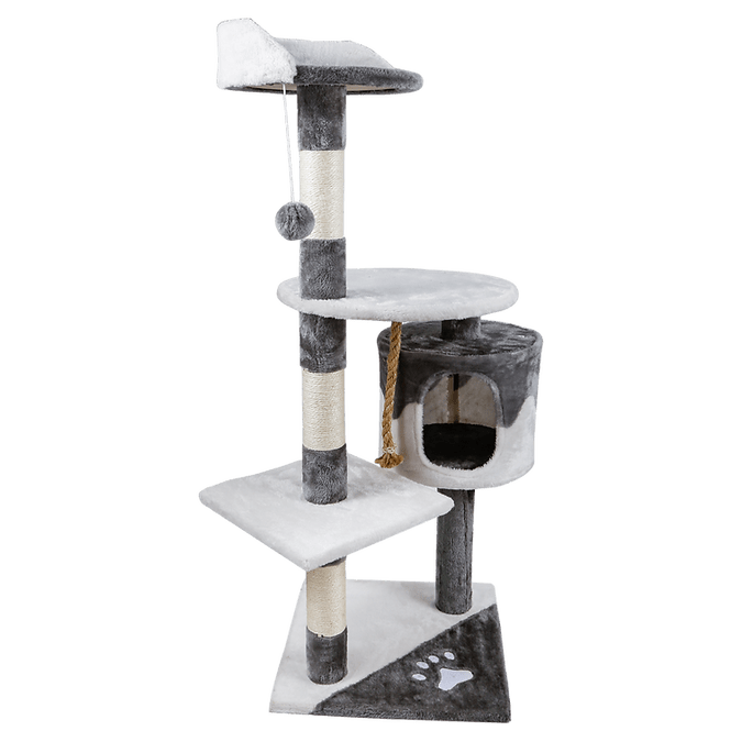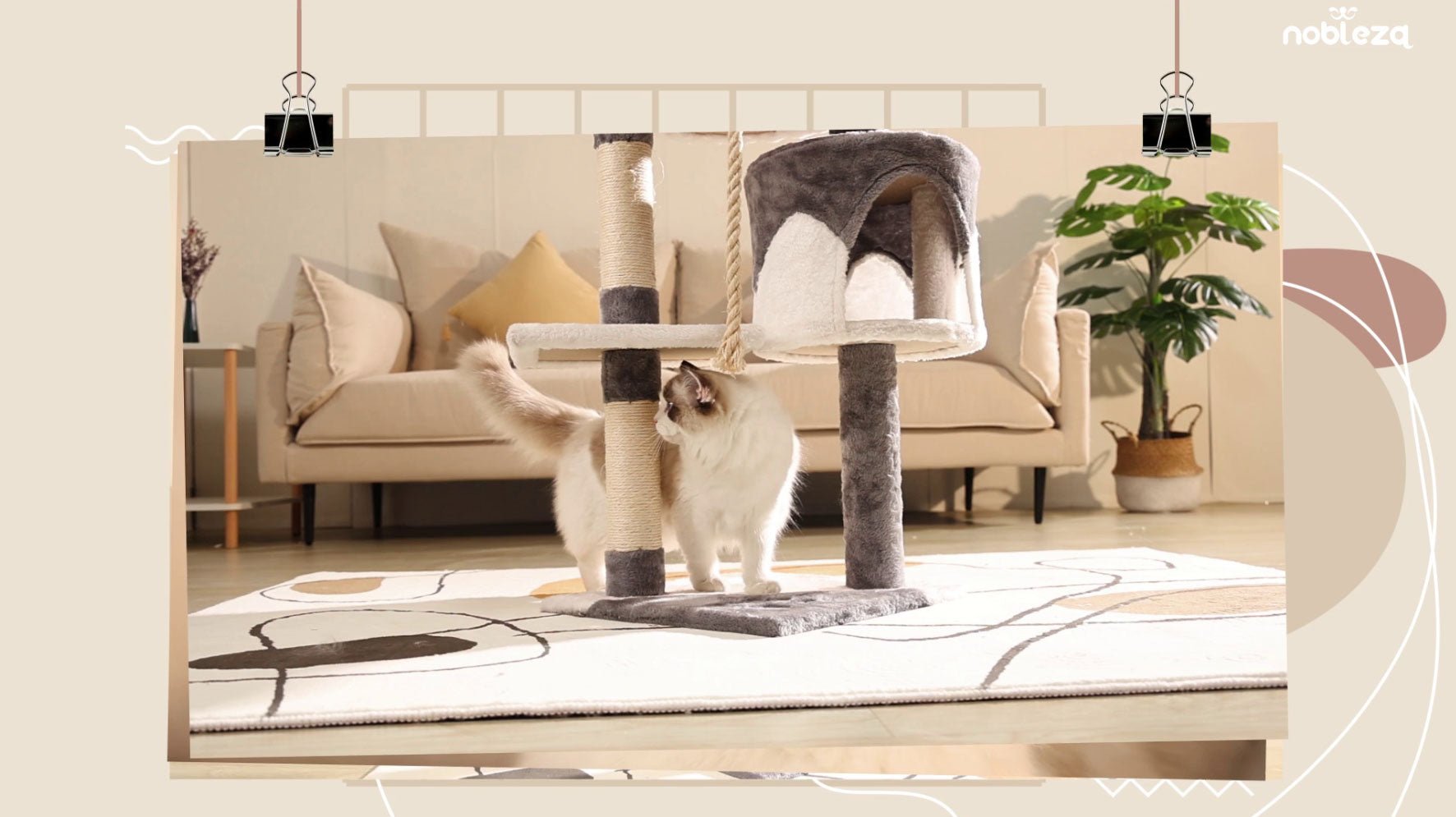 Der nobleza H-förmige Katzenbaum kombiniert Spielspaß, Krallenpflege und Komfort auf mehreren Ebenen. Mit gemütlicher Höhle, gepolsterten Liegeflächen, robusten Sisalstämmen und verspielten Anhängern bietet er alles, was Katzen zum Klettern, Ausruhen und Kratzen brauchen. Sein modernes Design in Weiß & Grau passt stilvoll in jedes Zuhause.
