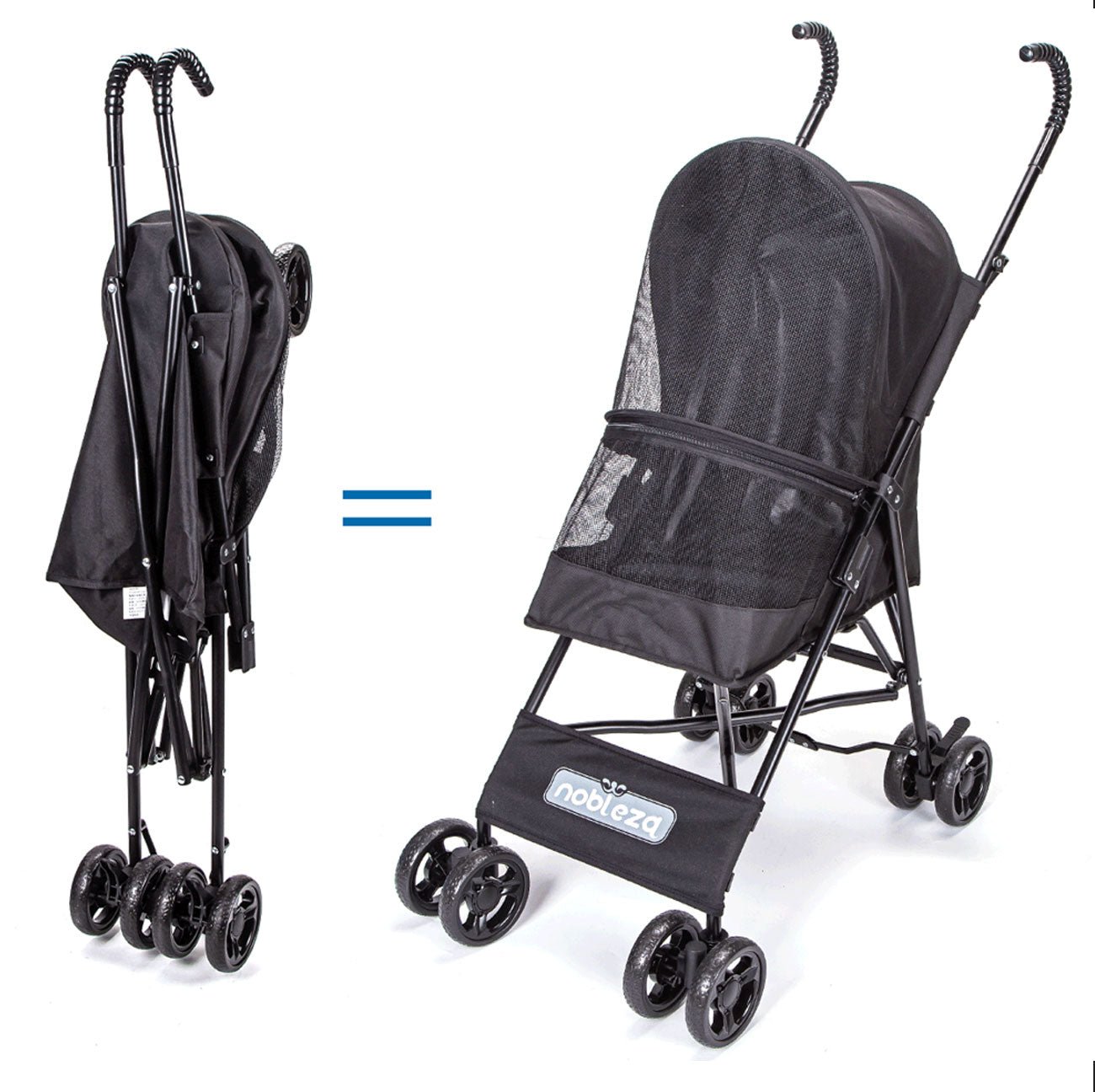 Der nobleza Haustierwagen ist die ideale Lösung, um deinen Hund oder deine Katze bequem und sicher zu transportieren. Mit seinem einklappbaren Design lässt sich der Wagen problemlos verstauen und nimmt dabei kaum Platz ein. Er ist komplett verschließbar, sodass dein Haustier rundum geschützt ist. Hergestellt aus hochwertigem, elastischem Oxford-Gewebe, ist der Wagen wasserdicht und gleichzeitig atmungsaktiv – ideal für verschiedene Wetterbedingungen. Das Material ist nicht nur robust, sondern sorgt auch für eine komfortable und stoßabsorbierende Fahrt. Die hochwertige Bereifung ermöglicht eine sanfte und ruhige Fahrt auf allen Oberflächen. Perfekt für Tierbesitzer, die viel unterwegs sind, und eine praktische Lösung für den sicheren Transport von Haustieren. Geeignet für Hunde und Katzen bis zu den Maßen L65W42H94 cm. Produktmerkmale: - Material: Elastisches, wasserdichtes Oxford-Gewebe und robuster Stahlrahmen - Design: Einklappbar, platzsparend und komplett verschließbar - Komfort: Atmungsaktiv, stoßabsorbierend und bequem - Bereifung: Hochwertige Räder für eine ruhige Fahrt - Einsatz: Ideal für Hunde und Katzen Maße: L65W42H94 cm. Nutze den nobleza Haustierwagen für komfortable und sichere Ausflüge mit deinem Haustier!