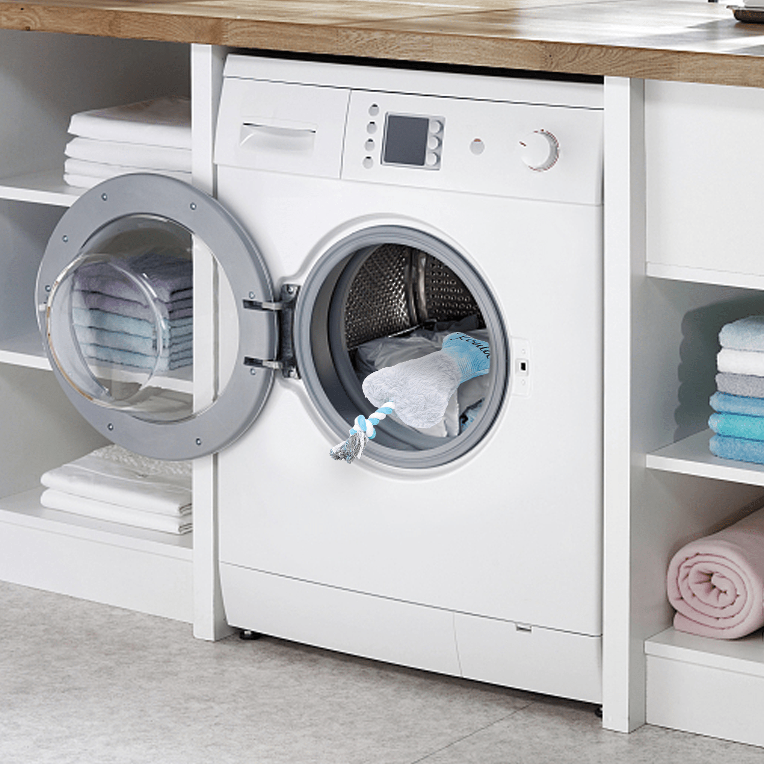 Das Hundespielzeug aus Plüsch ist der ideale Begleiter für Ihren vierbeinigen Freund, um Spielspaß und Wohlbefinden zu kombinieren. Mit einer Größe von 23 cm Höhe, 9 cm Länge und 4,5 cm Breite bietet dieses Spielzeug die perfekte Größe für Hunde unterschiedlichster Rassen. Die Kombination aus hochwertigen Materialien wie Kord, Baumwollseil und Polyester sorgt für Langlebigkeit und vielseitige Einsatzmöglichkeiten. Das Spielzeug besteht aus weichem, kurzem Plüschgewebe, das angenehm zu berühren ist und für ein kuscheliges Spielerlebnis sorgt. Die innenliegende, vollständige Füllung macht das Spielzeug stabil und gleichzeitig weich genug, um es bequem im Maul zu tragen oder zum Kuscheln zu verwenden. Die realistische Form und die ansprechenden Farben ziehen die Aufmerksamkeit Ihres Hundes auf sich und wecken seinen natürlichen Spiel- und Jagdinstinkt. Dieses Plüschspielzeug ist nicht nur zum Spielen gedacht, sondern hilft auch dabei, die Angst und Langeweile Ihres Hundes zu lindern. Es bietet eine hervorragende Möglichkeit, überschüssige Energie abzubauen und trägt dazu bei, Stress oder Trennungsängste zu reduzieren. Besonders für Hunde, die Trost in Spielzeugen suchen, ist dieses weiche Plüschspielzeug ein treuer Gefährte. Dank der eingearbeiteten Elemente aus Kord und Baumwollseil bietet das Spielzeug zusätzliche Texturen, die das Kauen fördern und gleichzeitig zur Zahnpflege beitragen können. Ihr Hund kann das Spielzeug leicht greifen, tragen oder schütteln, was für abwechslungsreiche Unterhaltung sorgt. Dieses vielseitige Plüschspielzeug eignet sich für gemeinsame Spieleinheiten wie Apportieren oder Ziehspiele, aber auch für das eigenständige Spielen und Kuscheln. Es vereint Komfort, Spielspaß und Beruhigung in einem Produkt und wird schnell zum Lieblingsspielzeug Ihres Hundes.