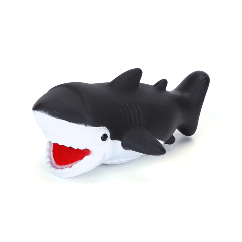 Das Hundespielzeug in Hai-Form bietet Ihrem Vierbeiner nicht nur stundenlangen Spielspaß, sondern auch eine ansprechende Optik, die garantiert die Aufmerksamkeit Ihres Hundes auf sich zieht. Hergestellt aus hochwertigem, langlebigem Vinyl, ist dieses Spielzeug besonders robust und widerstandsfähig gegen die typischen Beißattacken Ihres Hundes. Mit einer kompakten Größe von 12,5 cm in der Länge und 8,5 cm in der Breite eignet sich das Hai-Spielzeug ideal für Hunde aller Größen, insbesondere für kleinere und mittelgroße Rassen. Ein besonderes Highlight dieses Spielzeugs ist die integrierte Quietschfunktion. Sobald Ihr Hund darauf beißt oder damit spielt, erzeugt das Spielzeug einen unterhaltsamen Quietscher, der ihn zusätzlich anregt und zum Spielen animiert. Die Geräusche fördern nicht nur den Spieltrieb, sondern unterstützen auch die Interaktion zwischen Ihnen und Ihrem Hund, wodurch Sie gemeinsame Spielzeiten noch unterhaltsamer gestalten können. Das schwarze Design des Spielzeugs verleiht ihm eine elegante und ansprechende Optik, die in jede Spielzeugsammlung passt. Die glatte Oberfläche des Vinyls sorgt dafür, dass das Spielzeug leicht zu reinigen ist und hygienisch bleibt. Es ist ein ideales Spielzeug, um die Neugier Ihres Hundes zu wecken und seine natürliche Instinkte zu fördern, indem es zum Kauen, Werfen und Apportieren anregt. Mit seiner robusten Bauweise und der zusätzlichen Quietschfunktion ist dieses Hai-Spielzeug perfekt für den täglichen Gebrauch. Es ist nicht nur für das Spielen im Innenbereich geeignet, sondern auch ideal für den Einsatz im Freien, sei es im Garten oder im Park. Dieses Hundespielzeug ist eine hervorragende Wahl, um Ihren Hund körperlich und geistig aktiv zu halten, und sorgt für unvergessliche Momente voller Freude und Spiel.