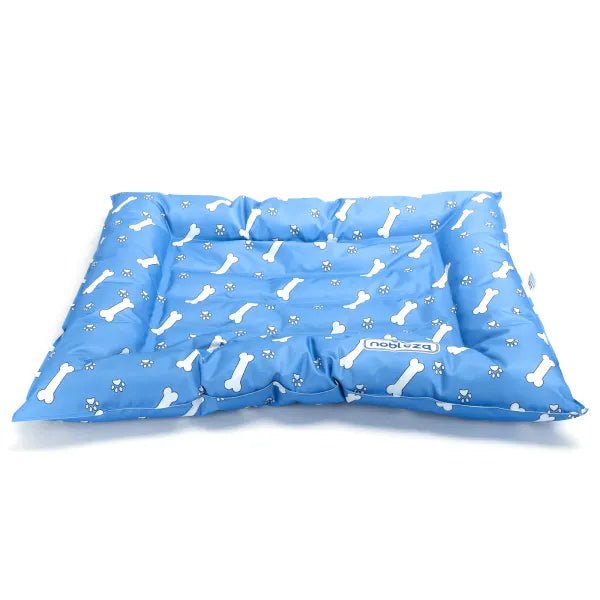 Das Nobleza Kühlbett mit Knochen- und Pfotenmotiv ist die perfekte Lösung für warme Sommertage. Dank der integrierten Gelfüllung funktioniert die Kühlung rein automatisch – ohne Strom, Wasser oder vorheriges Einfrieren. Sobald sich dein Haustier auf das Bett legt, beginnt das Kühlgel durch Körperkontakt zu wirken und sorgt für eine angenehme, gleichmäßige Abkühlung. Der weiche Bezug in frischem Blau mit verspieltem Knochen- und Pfotenprint macht das Bett nicht nur funktional, sondern auch optisch zu einem echten Hingucker. Die flache Liegefläche ist bequem, das Material robust und pflegeleicht – einfach mit einem feuchten Tuch reinigen. Ob für Hunde oder Katzen, drinnen oder draußen – das Nobleza Kühlbett ist ein idealer Rückzugsort und unterstützt dein Tier beim Entspannen und Regenerieren an heißen Tagen.