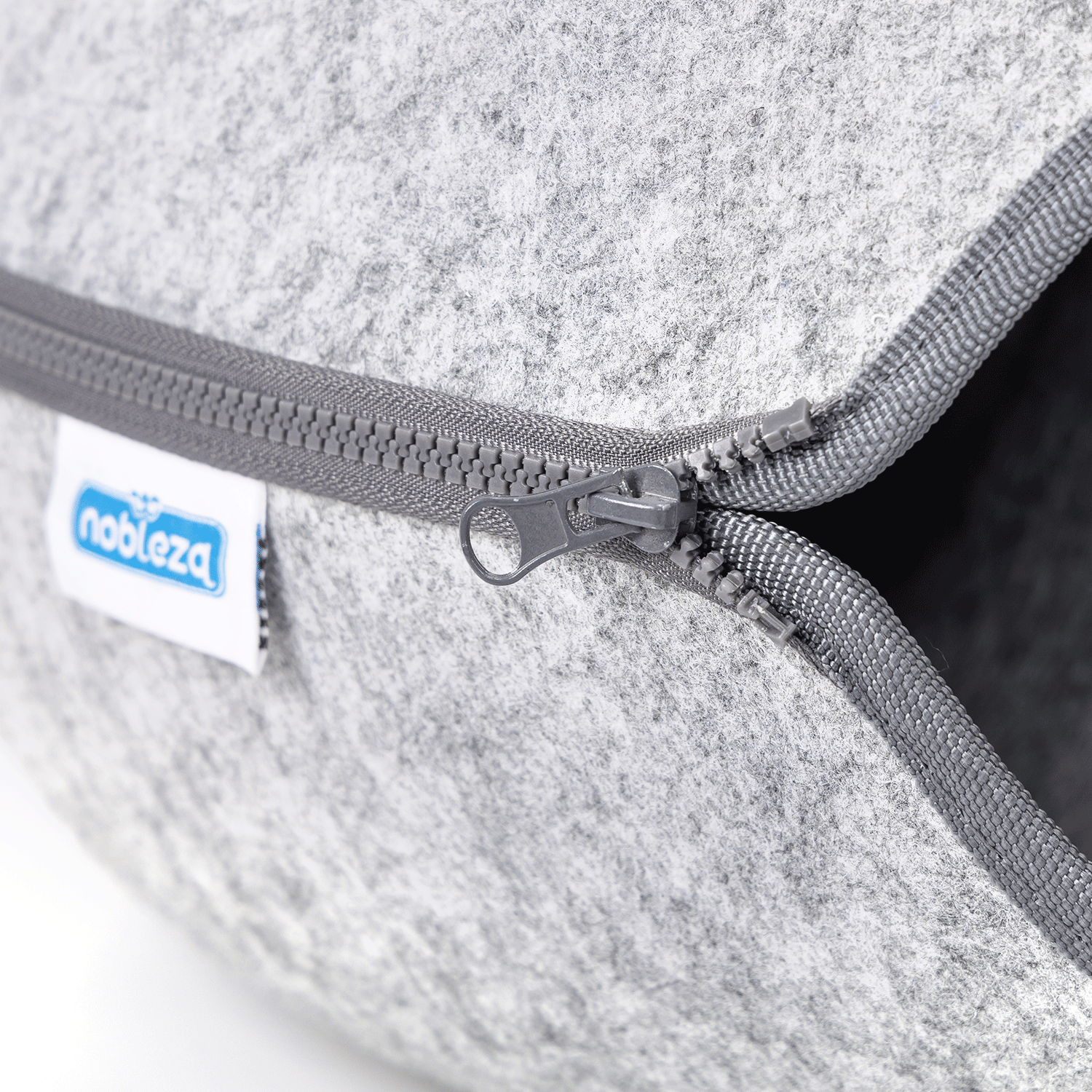 Luxuriöses Katzentunnelhaus aus Filz in Donutform – ein stilvoller Rückzugsort für Ihre Katze. Gefertigt aus strapazierfähigem Filz bietet es eine warme, gemütliche Umgebung und ein einladendes, donutförmiges Design mit zentralem Schlafplatz. Das abnehmbare Dach mit Reißverschluss erleichtert Reinigung und Anpassung. Die weiche Liegefläche sorgt für maximalen Komfort. Eine elegante Ergänzung für Ihr Zuhause und ein Wohlfühlort für Ihre Katze.