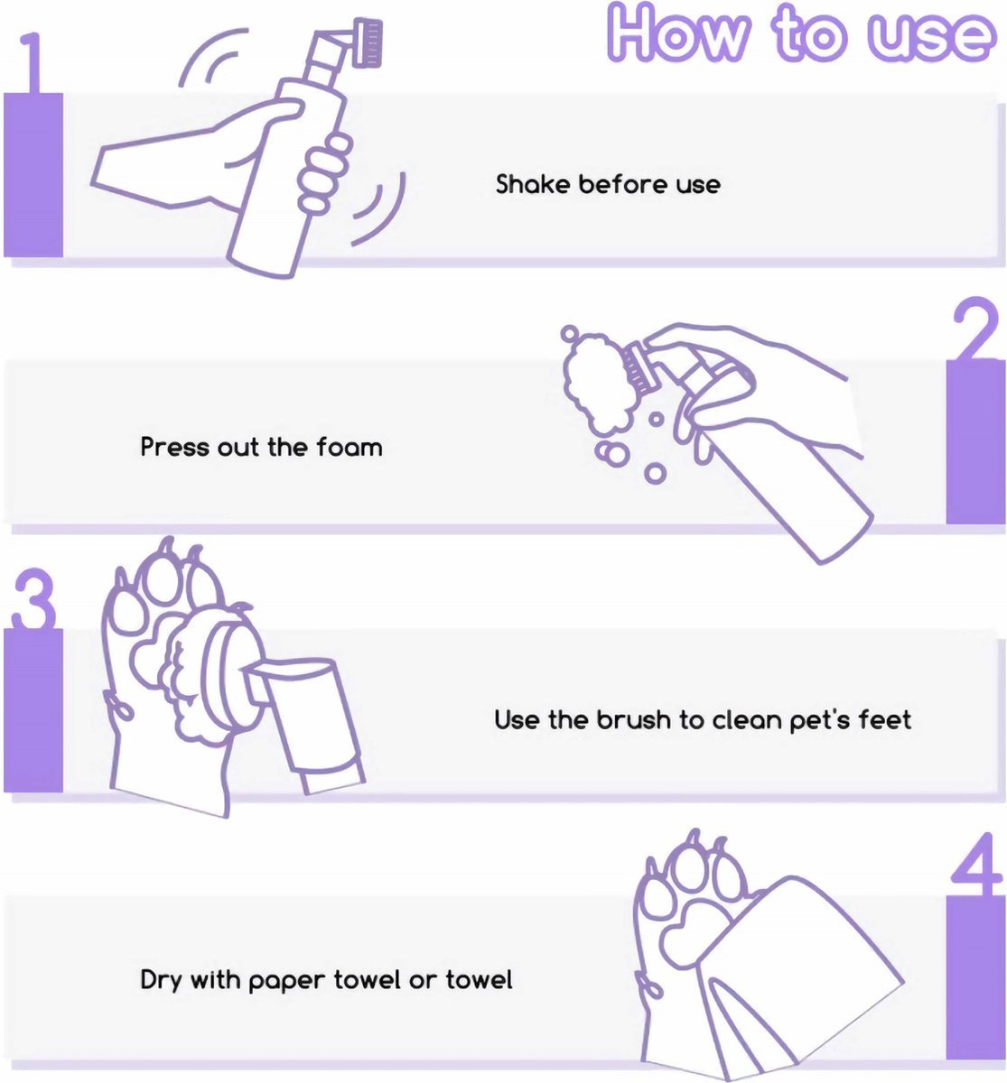 Das pfotenreinigende Haustiershampoo mit integrierter Bürste ist die ideale Lösung für eine schonende und effektive Reinigung der Pfoten von Hunden und Katzen. In der handlichen 250-ml-Flasche vereint es milde Reinigung, sanfte Massage und pflegende Inhaltsstoffe wie Cocoamidopropyl-Betaine und Zitronensäure für ein glänzendes, gesundes Fell. Die weiche Bürste entfernt Schmutz gründlich, ohne Haut oder Fell zu reizen, während der frische Duft für angenehme Sauberkeit sorgt. Perfekt für die tägliche Pfotenpflege nach Spaziergängen – einfach, praktisch und tierfreundlich.