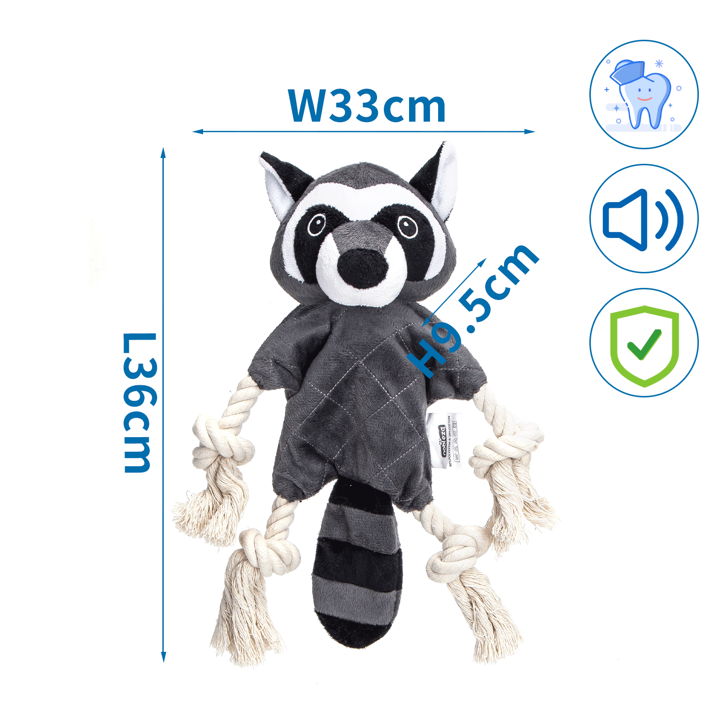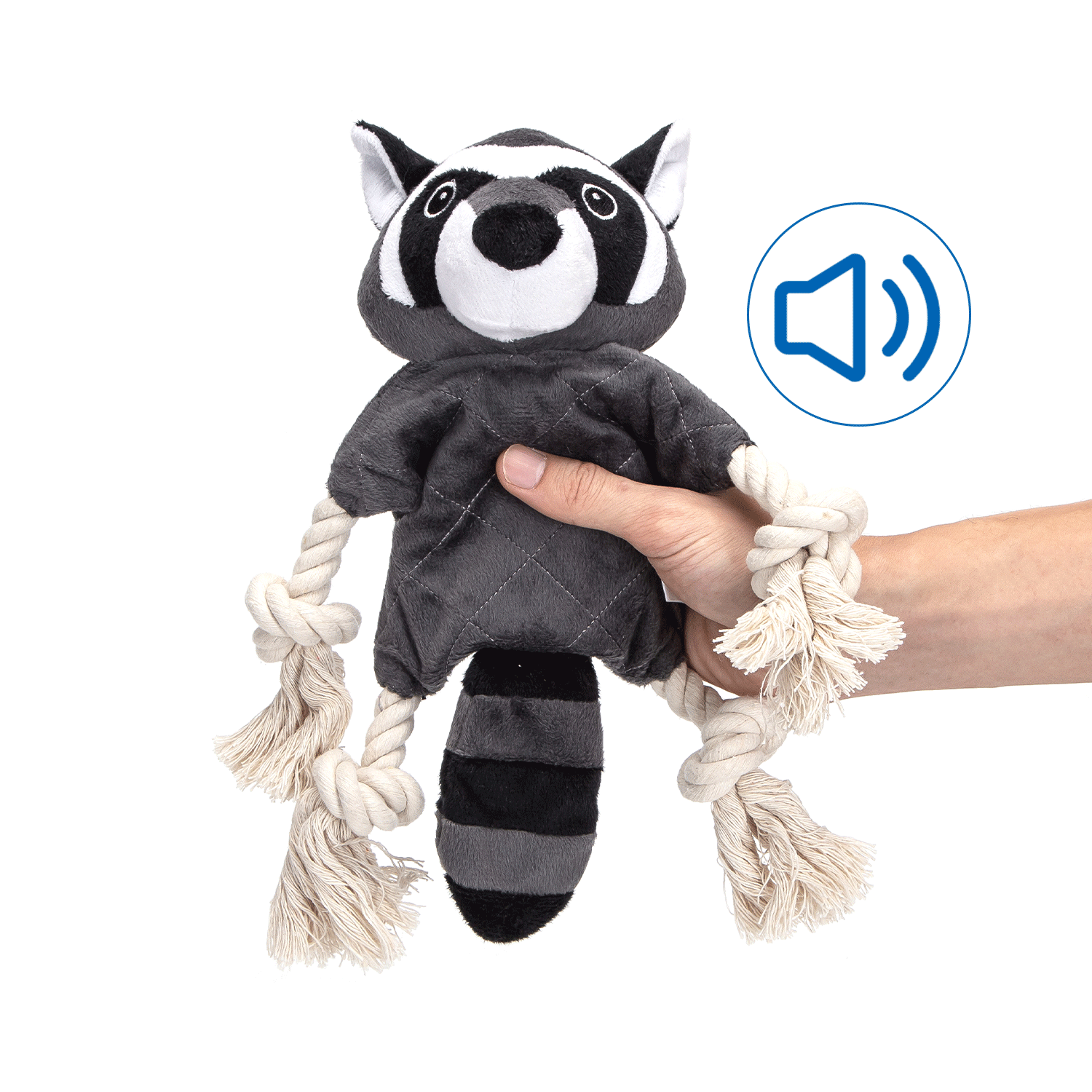 nobleza - Plüsch-Hundeseilspielzeug mit Sound Waschbär