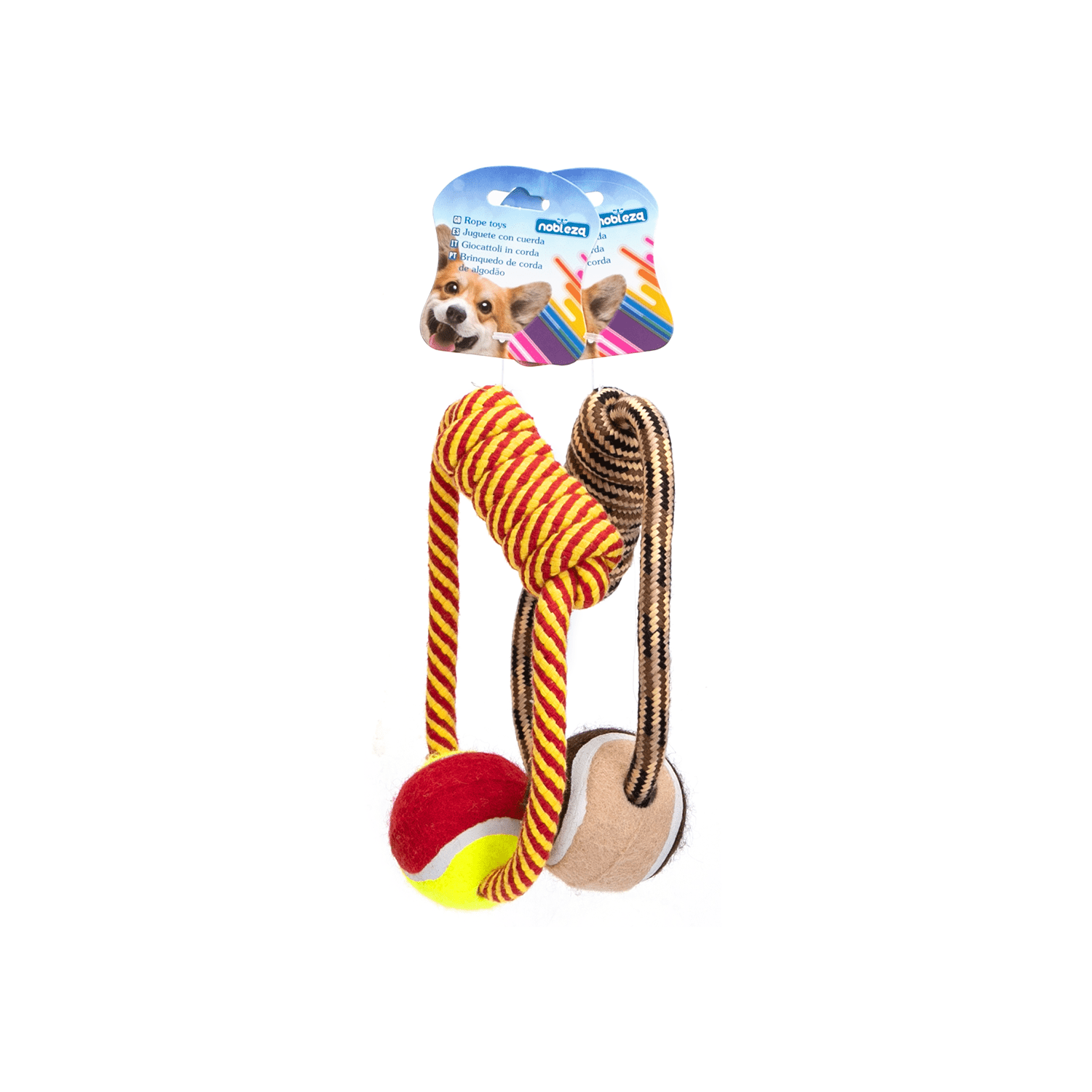 Das nobleza Zerrspielzeug für Hunde ist das ideale Accessoire, um Ihren vierbeinigen Freund aktiv und glücklich zu halten. Mit einer Länge von 20 cm und in zwei leuchtenden Farben erhältlich, weckt dieses hochwertige Zerrspielzeug die Neugierde und den Spieltrieb Ihres Hundes. Hergestellt aus einer Mischung aus Terylen und Baumwolle, bietet das Zerrspielzeug eine perfekte Kombination aus Haltbarkeit und Komfort. Das hochwertige Baumwollseil ist nicht nur ungiftig, sondern auch besonders bissfest, wodurch es selbst intensiven Kau- und Zerrspielattacken standhält. Dies sorgt für eine lange Lebensdauer des Spielzeugs und ermöglicht es Ihrem Hund, sicher und gesund zu spielen. Ein besonderes Highlight dieses Zerrspielzeugs ist der integrierte Griff und der daran befestigte Ball. Der Griff ermöglicht es Ihnen, das Spielzeug leicht zu greifen und mit Ihrem Hund interaktive Zerrspiele zu spielen, während der Ball für zusätzlichen Spaß sorgt. Diese Kombination fördert nicht nur die körperliche Aktivität, sondern auch die Bindung zwischen Ihnen und Ihrem Haustier. Darüber hinaus trägt das Zerrspielzeug zur Zahngesundheit Ihres Hundes bei. Das Baumwollseil reinigt sanft die Zähne und das Zahnfleisch Ihres Hundes während des Spielens, was hilft, Plaque und Zahnstein zu reduzieren und schlechten Atem zu verhindern. Mit seinen ansprechenden Farben und dem praktischen Design wird dieses Zerrspielzeug schnell zum Lieblingsspielzeug Ihres Hundes. Es ist ideal für drinnen und draußen und bietet Ihrem Hund stundenlangen Spielspaß und Training. Gönnen Sie Ihrem Hund das Nobleza Zerrspielzeug und sorgen Sie für gesunde, glückliche und aktive Spielstunden.