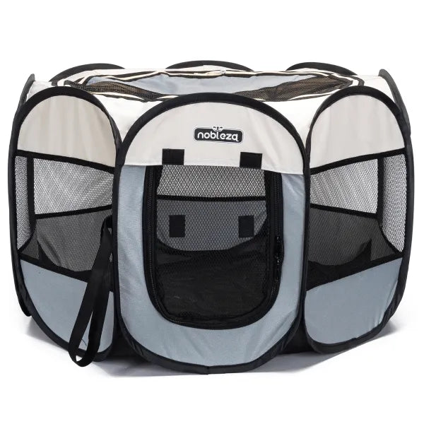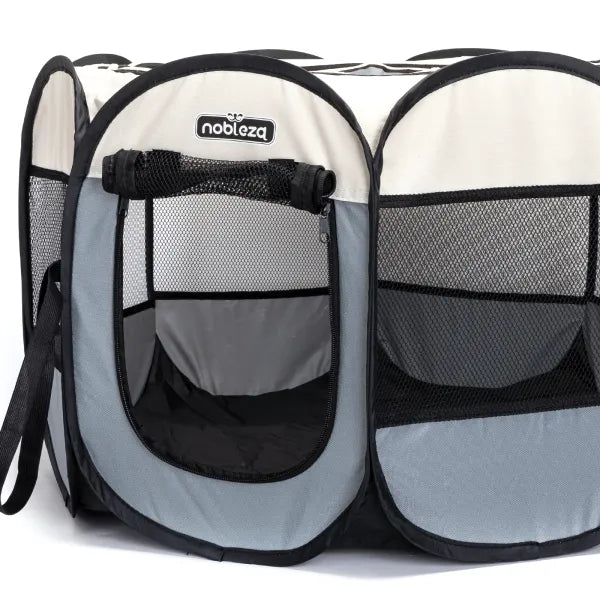 Der faltbare Nobleza Welpenauslauf ist die ideale Lösung für Hunde, Welpen und Kleintiere – stabil, leicht, vielseitig einsetzbar. Er bietet viel Platz, schützt durch eine Reißverschlussabdeckung vor Sonne und ist dank kompakter Faltgröße perfekt für Zuhause und unterwegs.